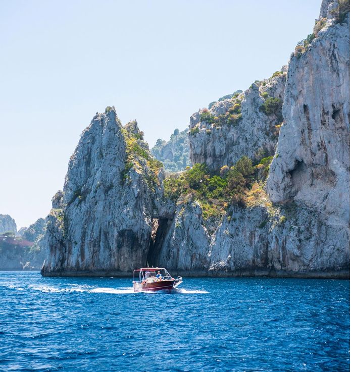 *Durante a alta temporada, a visita à Gruta Azul em Capri pode apresentar desafios devido a longas filas e à capacidade de entrada limitada. Caso a visita não seja possível ou as condições climáticas não permitam, nossos guias locais sugerirão atrações alternativas para garantir uma experiência agradável e memorável (por exemplo, os Faraglioni).